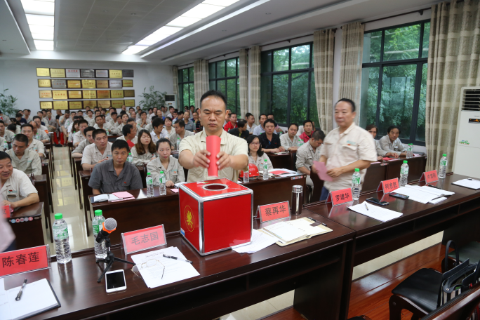 2017年6月30日上午,尊龙凯时股份党委纪委换届选举大会及纪念建党96周年暨表彰大会在公司行政中心二楼会议室召开。大会由公司党委副书记毛志国主持,公司党委书记蔡再华、湖北西塞山工业园区党工委副书记罗建华及第三届公司党委委员候选人在主席台就坐,公司全体党员参加了大会。